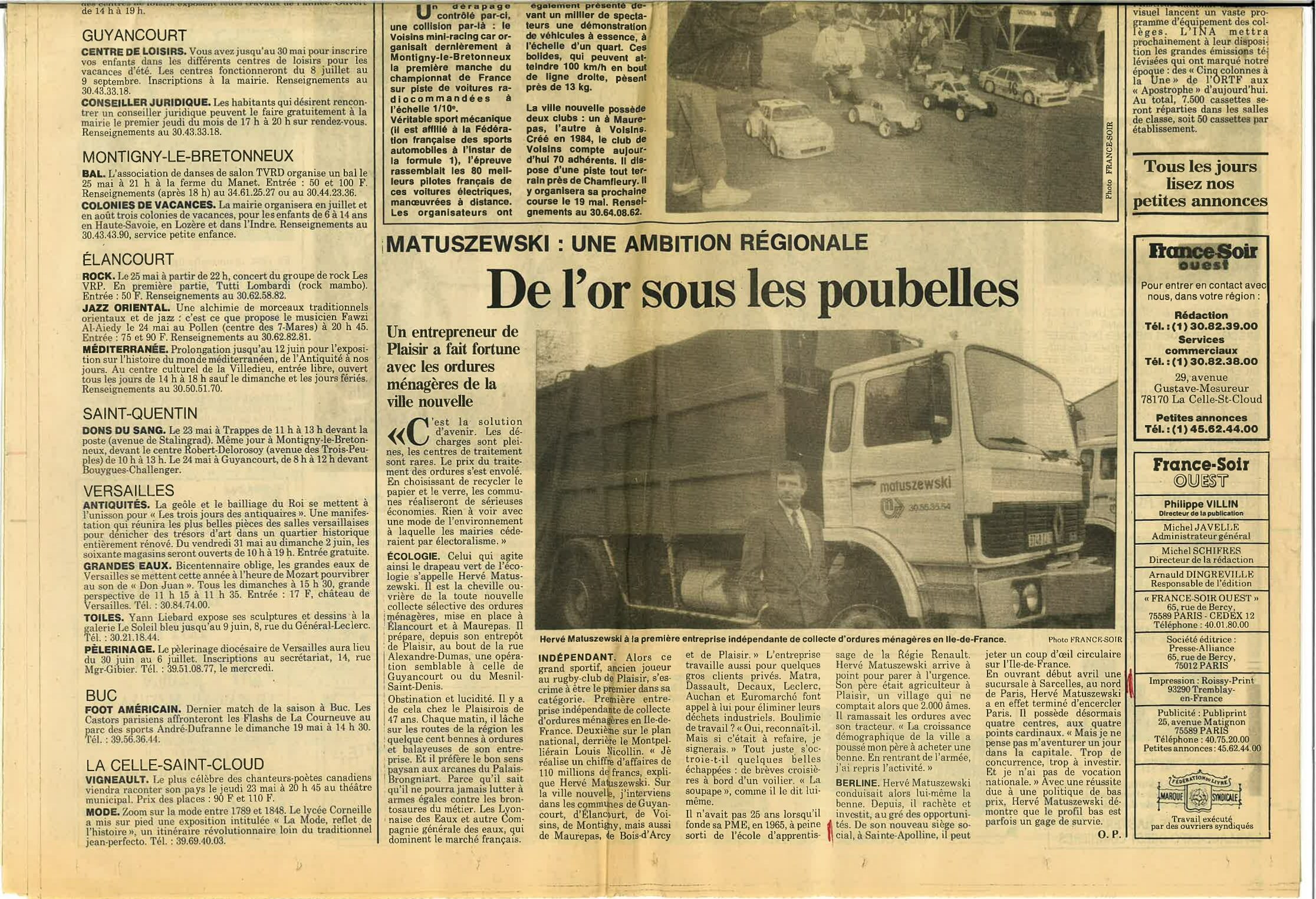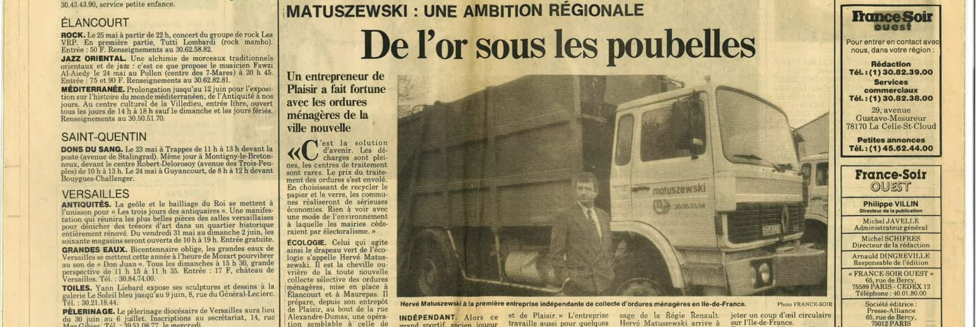 ARCHIVE PRESSE – France-Soir Ouest. “Matuszewski : Une ambition régionale. De l’or sous les poubelles”